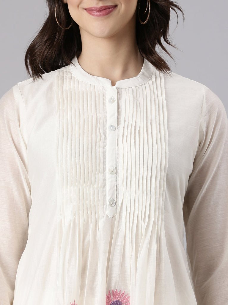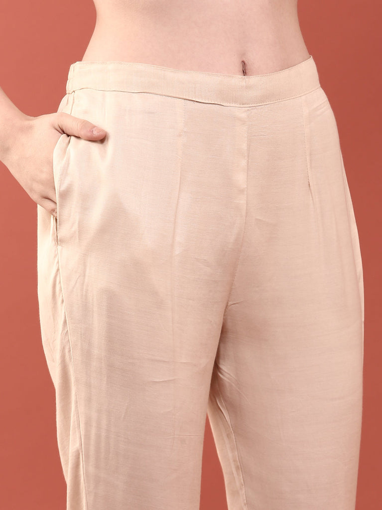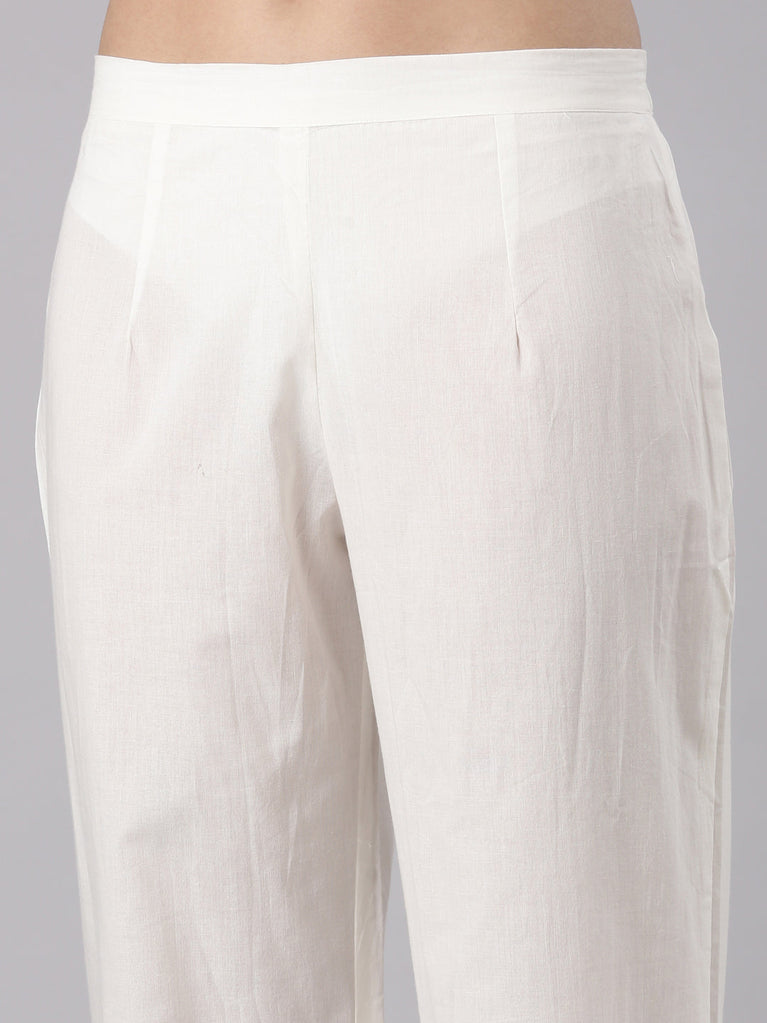 This cream cotton printed three-piece set offers both comfort and style. Made from soft, breathable cotton, it ensures all-day ease while the delicate print adds an elegant touch. Ideal for casual wear or relaxed gatherings, this set combines practicality with a refined look to keep you feeling confident and comfortable throughout your day.
