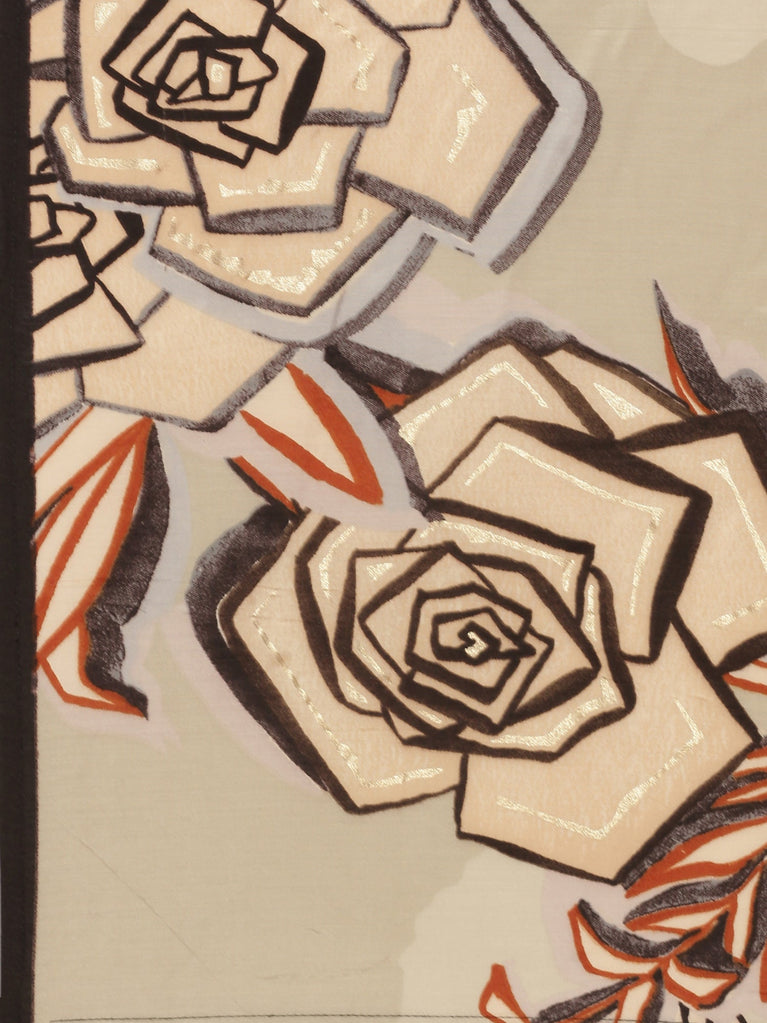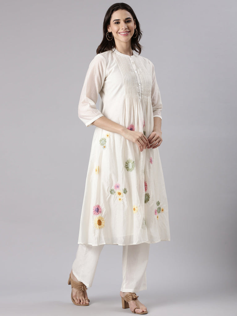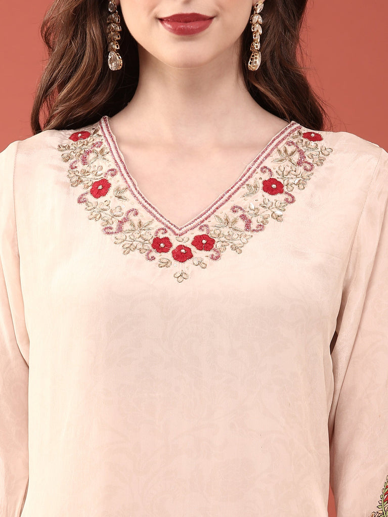 Cream crepe hand embroidered three piece suit set with Floral dupatta