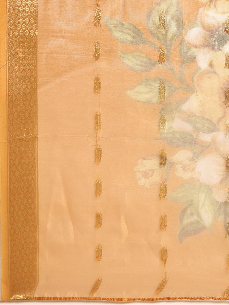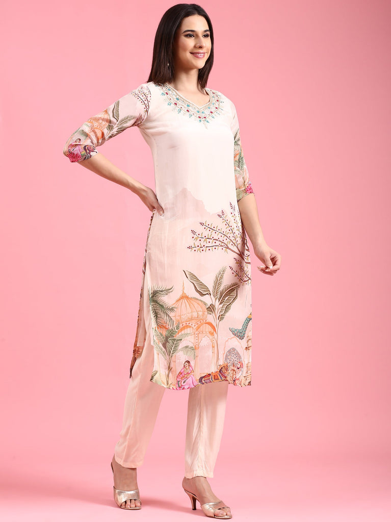 Cream Crepe Printed Embroidery Three Piece Suit Set
