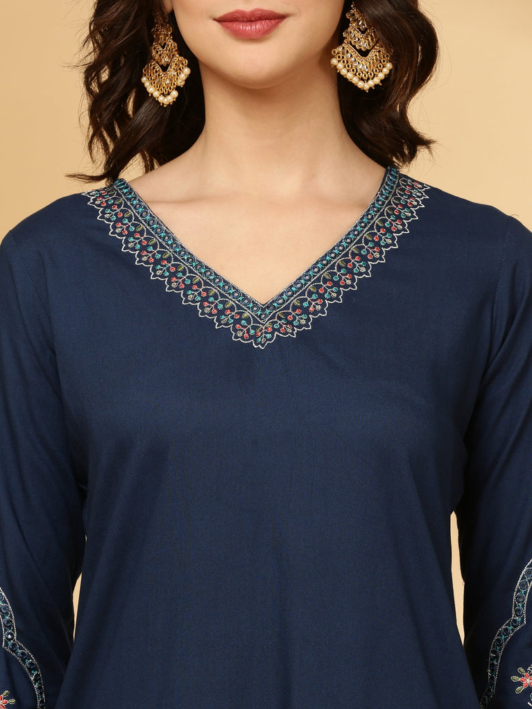 This burnt orange three-piece palazzo set showcases exquisite hand embroidery, combining traditional craftsmanship with modern sophistication. The flowing palazzo pants offer comfort and grace, while the detailed embroidery adds a refined touch to create a stylish, elegant ensemble perfect for special occasions.