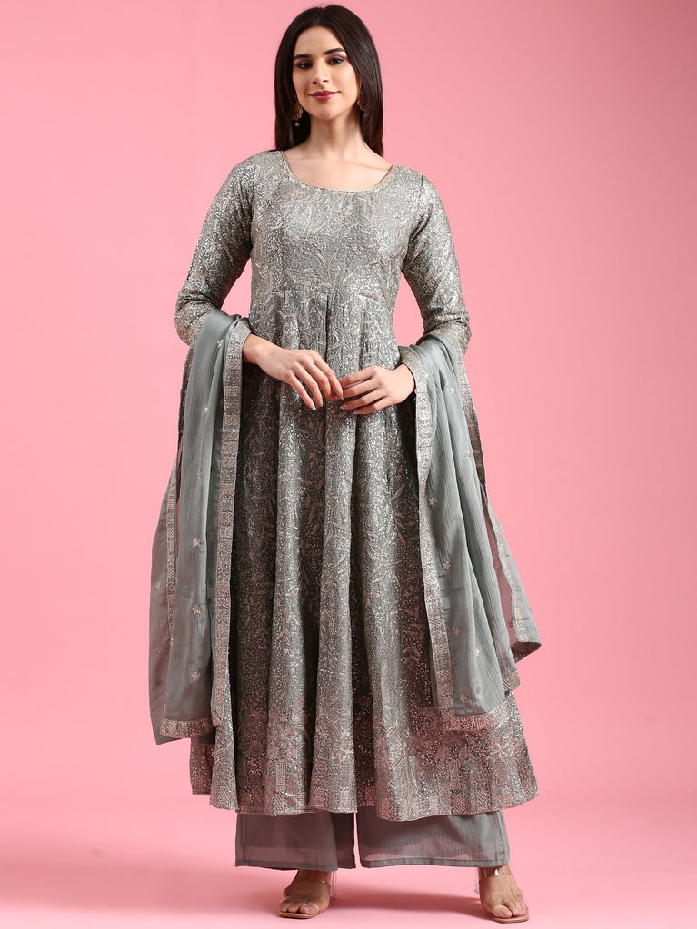 Ferozi tissue fabric anarkali three piece suit set