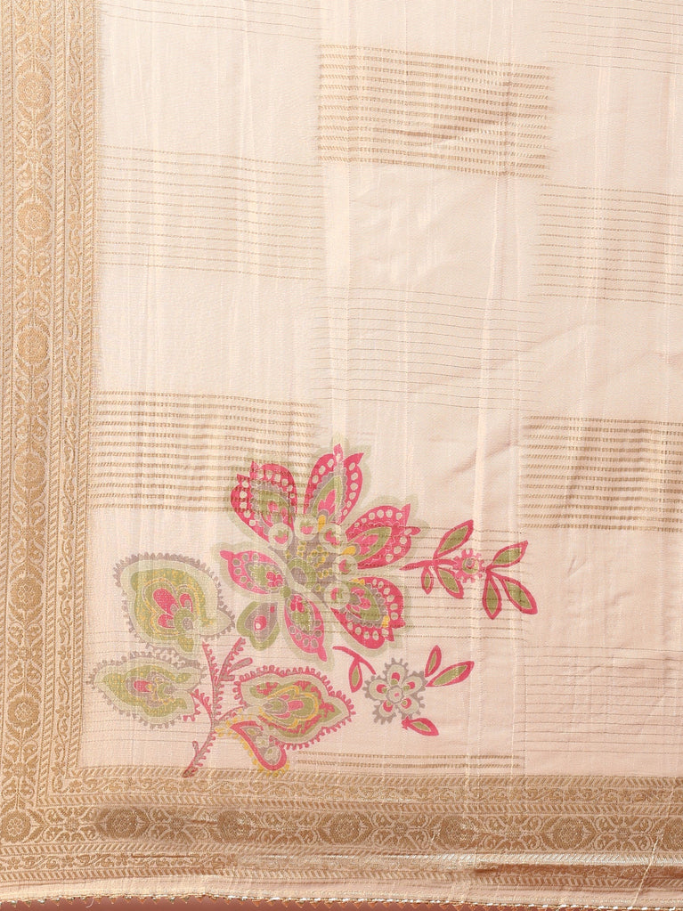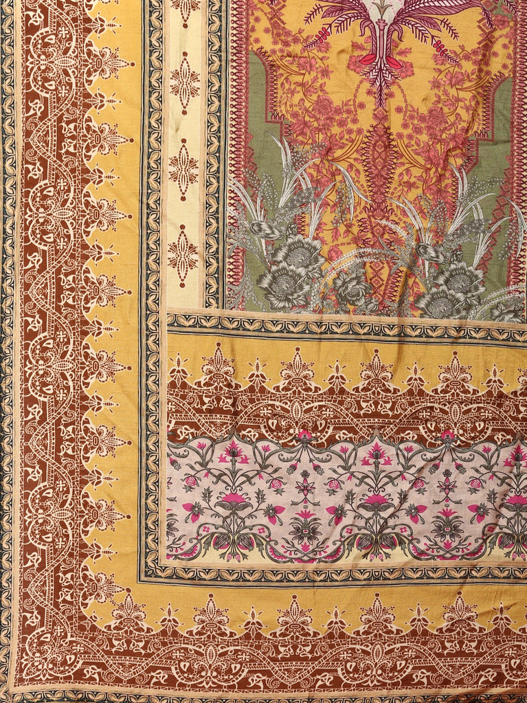 Gold Modal Silk Floral Digital Print Three Piece Set