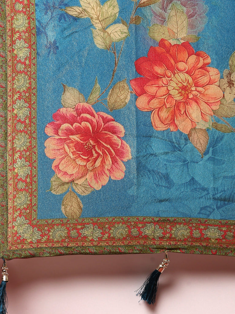 Ferozi Silk Floral Digital Print Suit Set