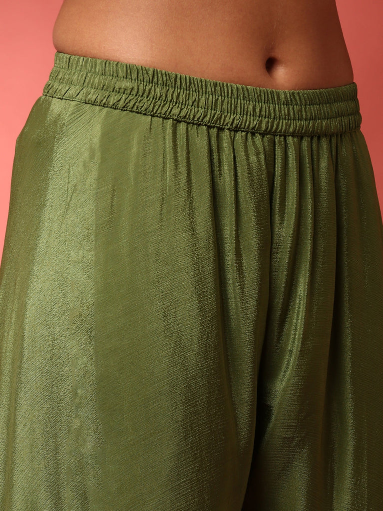 Green Chinon Heavy Embroidered Kali With Palazzo