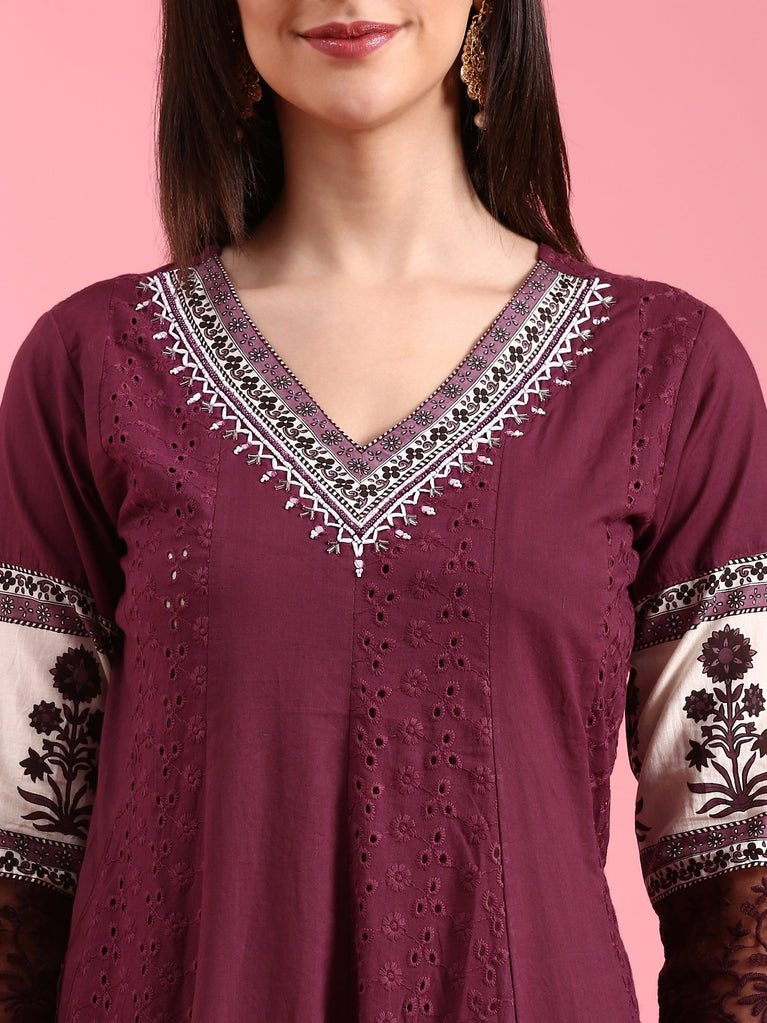 Grape Chikan Anarkali Three Piece Suit Set