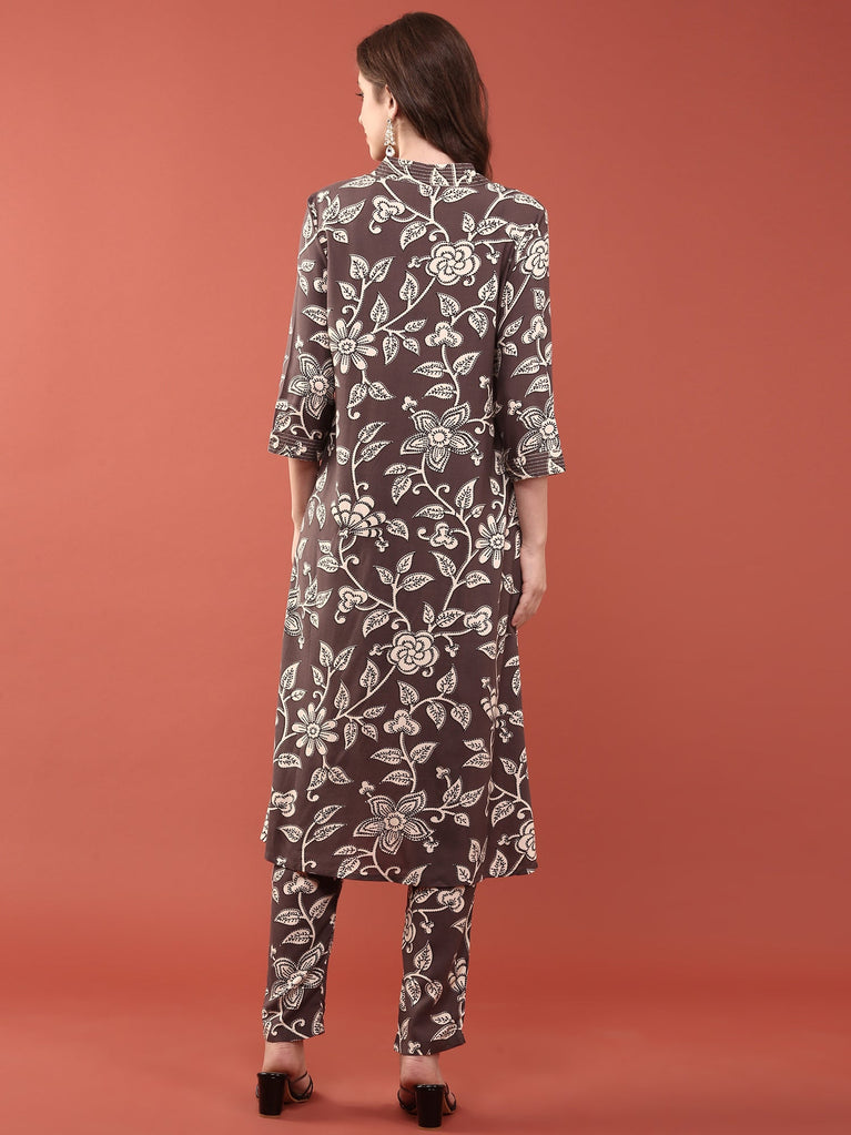 Grape Rayon Floral Printed Two Piece Set