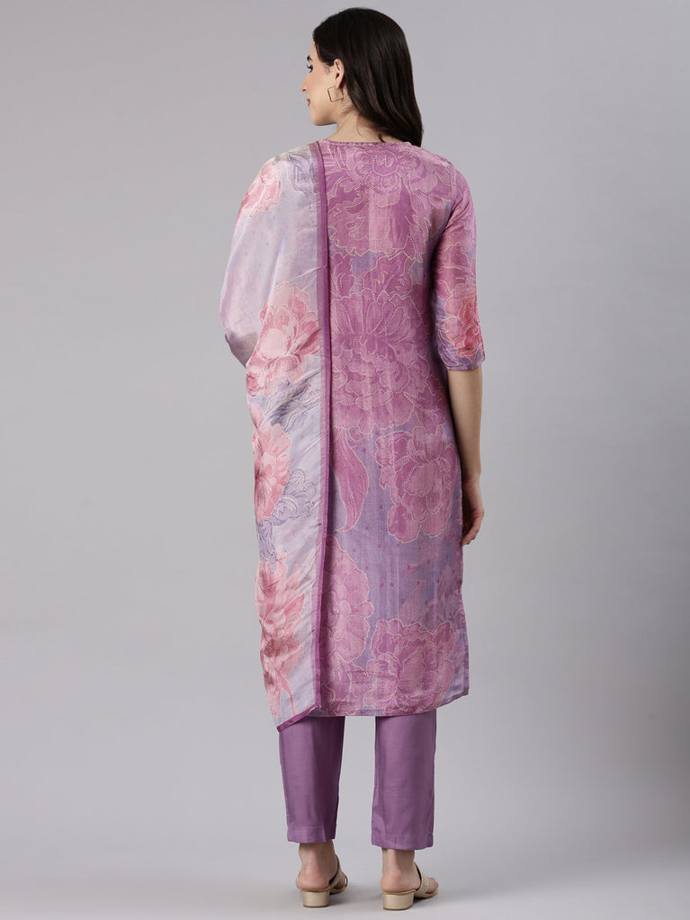 Lavender Modal Silk Floral Digital Print Three Piece Set