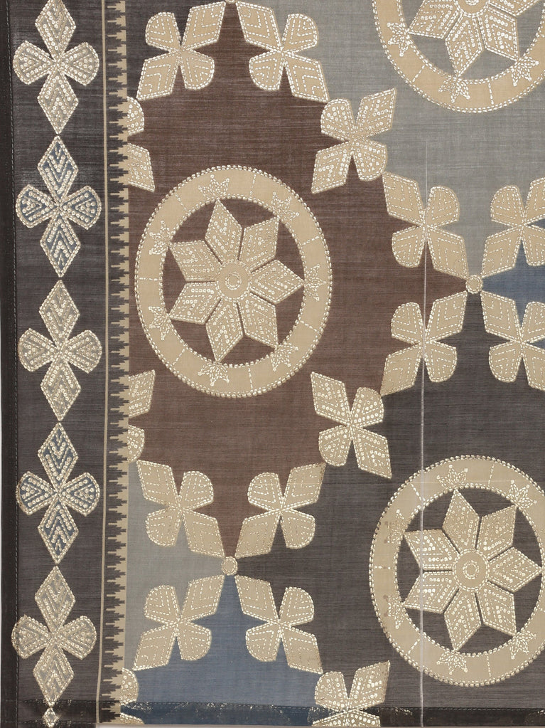 Grey Muslin Printed A-Line Three Piece Set