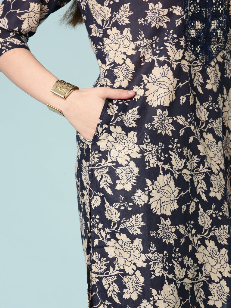 Indigo Cotton Digital Print Three Piece Set