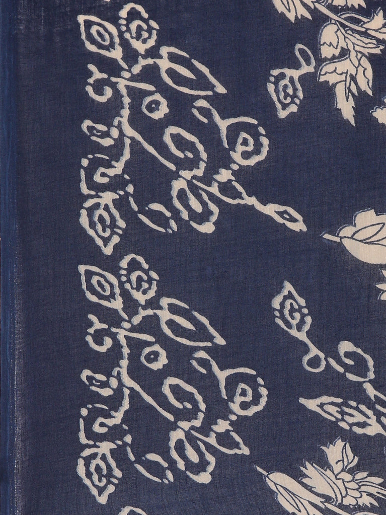 Indigo Cotton Printed Anarkali Three Piece Set