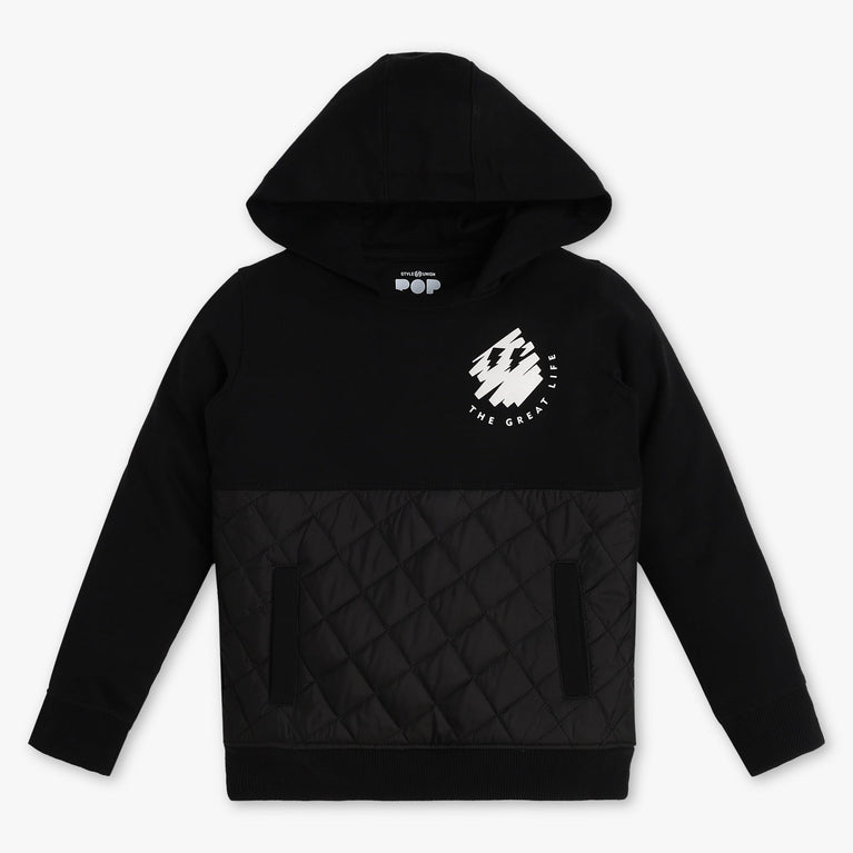 Discover the perfect blend of comfort and style with our Boys Pop Sweat Tee. Crafted from a soft cotton-polyester blend, this hoodie ensures warmth and coziness for your little one, making it an ideal choice for any casual outing or playdate.