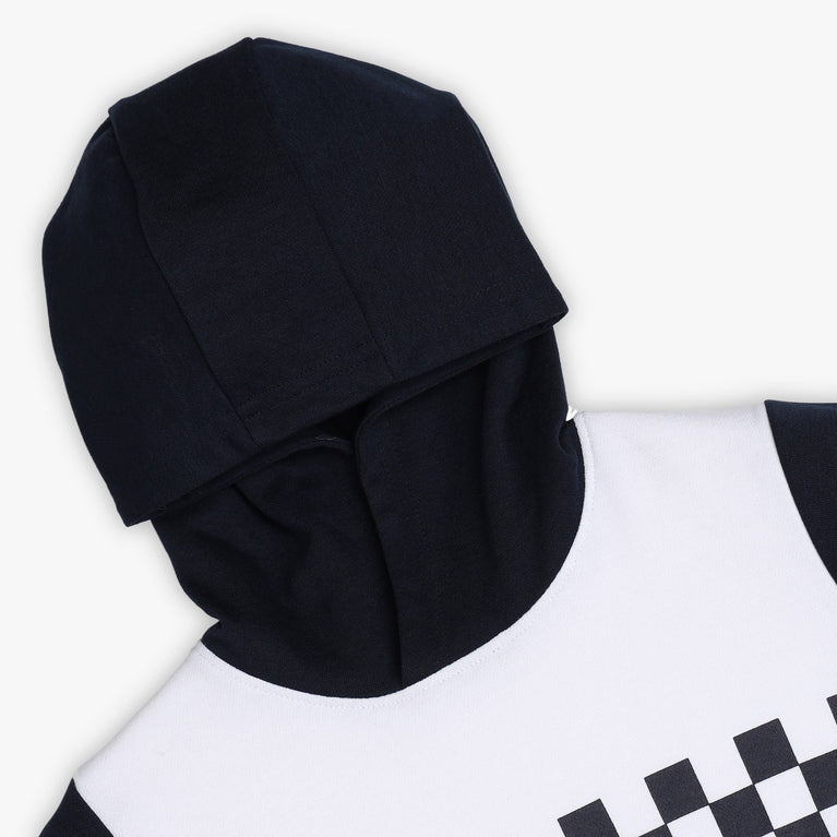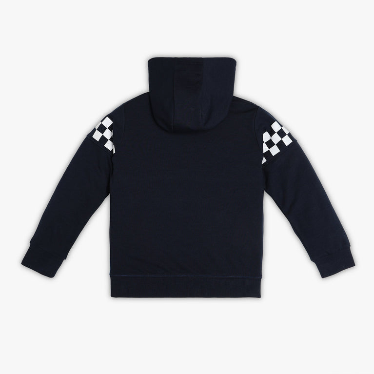 These street wear theme, solid pattern sweatshirt has hoodie and full sleeve. Made from cotton, your kid's feel comfortable wearing the product.