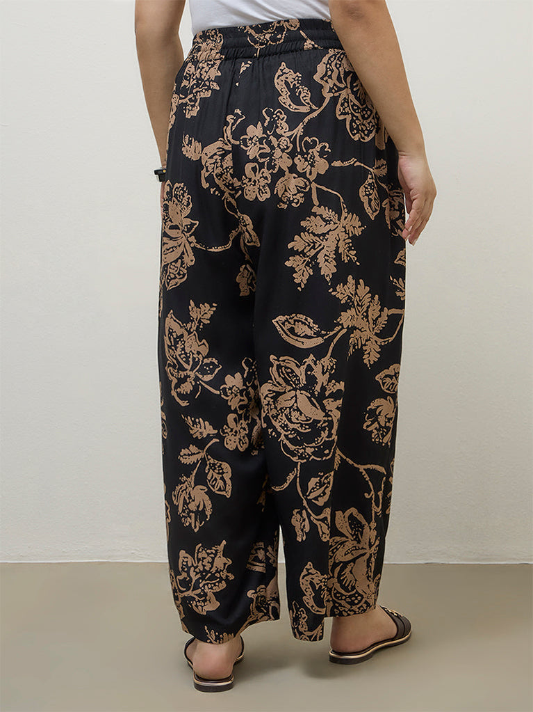 Diza Black Floral Pattern Palazzos