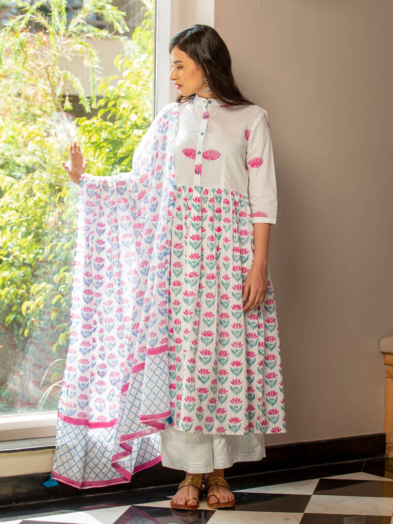 Pear Organic Cotton Block Printed Kaftan for Kids