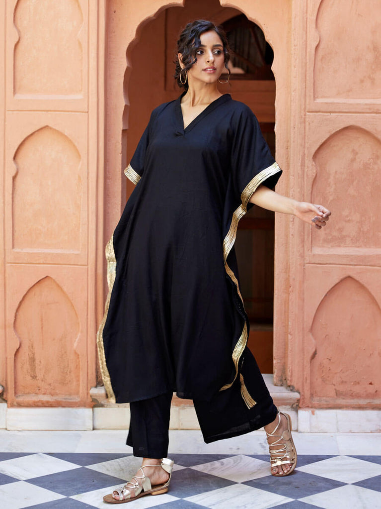 Ruhani Sequined Black Kaftan Kurta