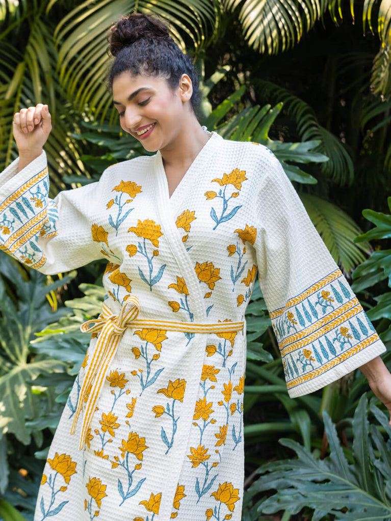 Sangeet Luxury Block Printed Cotton Bath Robe