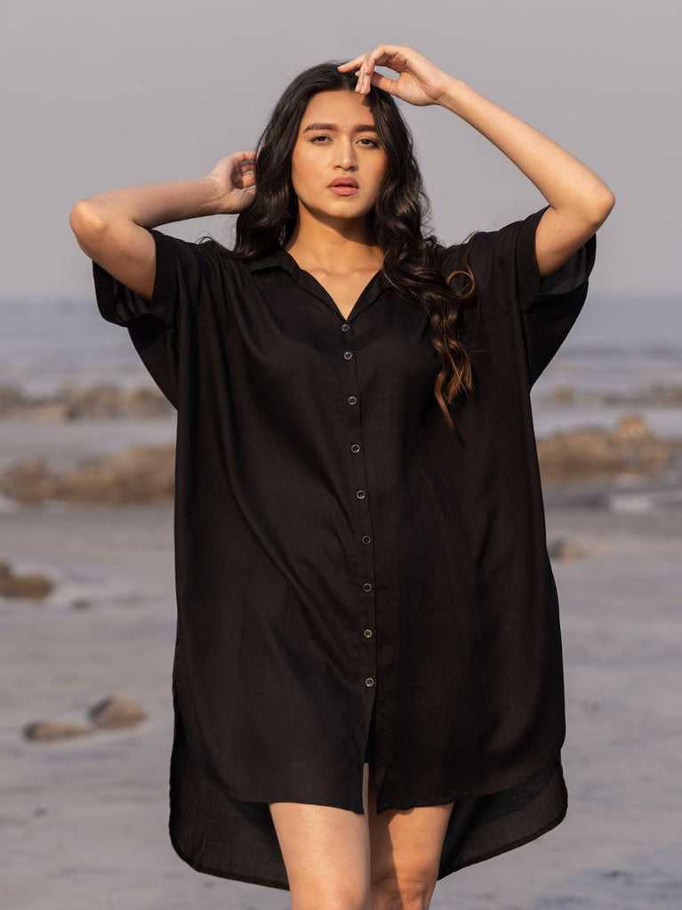Sajdaa Black Oversized Asymmetrical Long Shirt