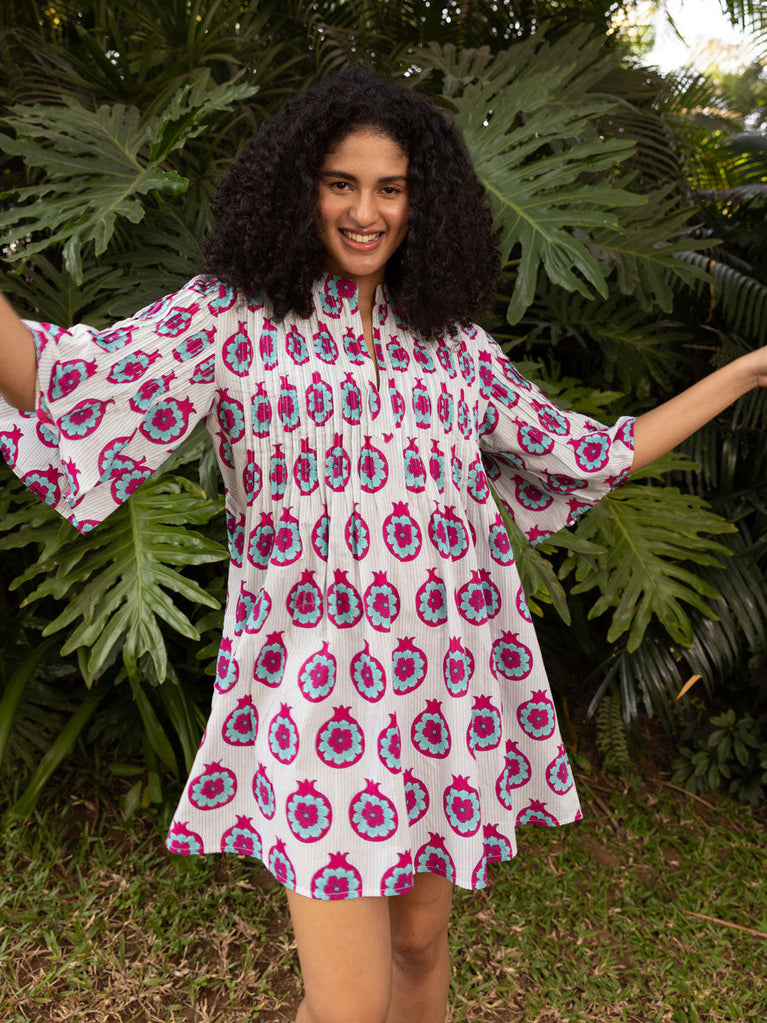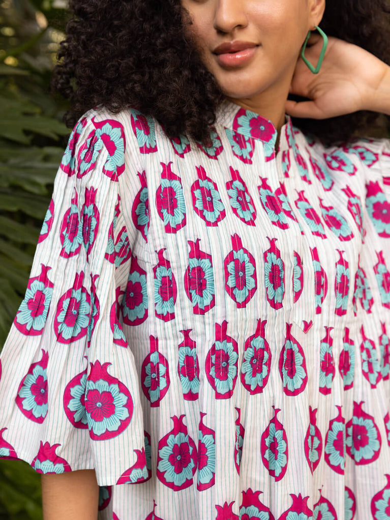 Sweetheart Organic Cotton Block Printed Tiered Dress