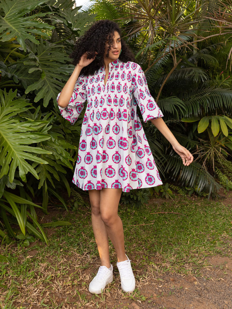 Sunset and Wine Cotton Kaftan Shirt Dress
