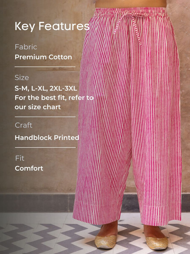 Blue Stripes Block Printed Cotton Top & Pyjama Set