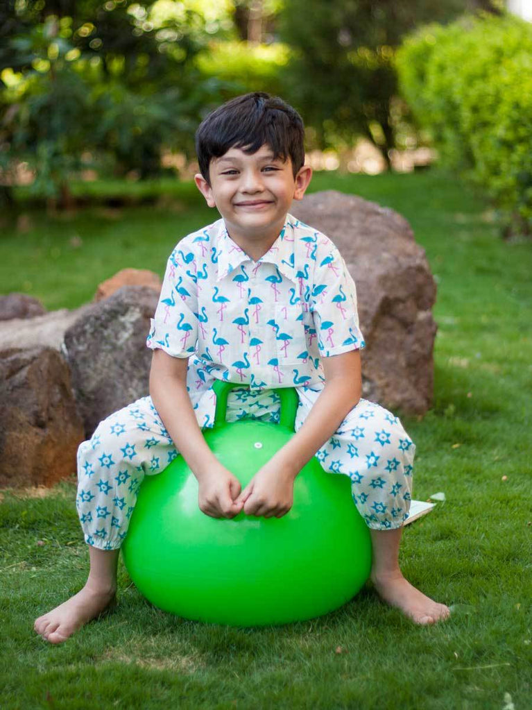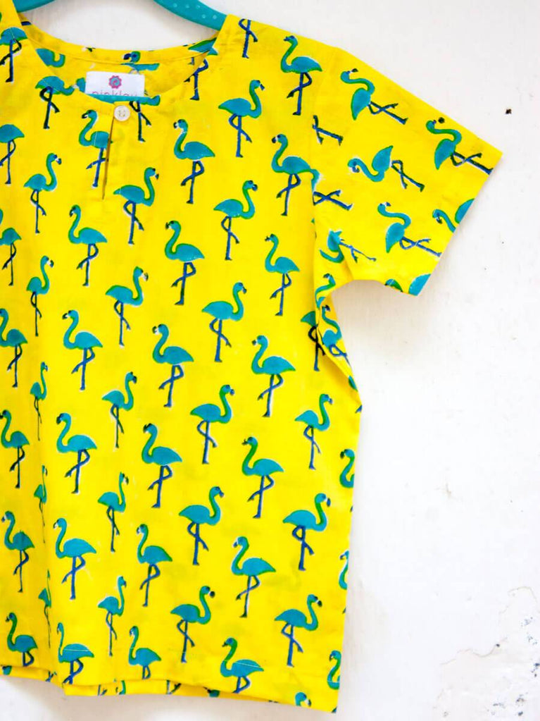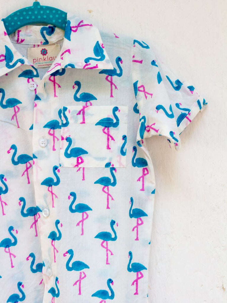 Flamingo Dance Organic Cotton Block Printed Shirt