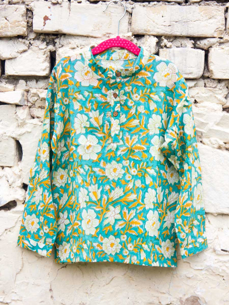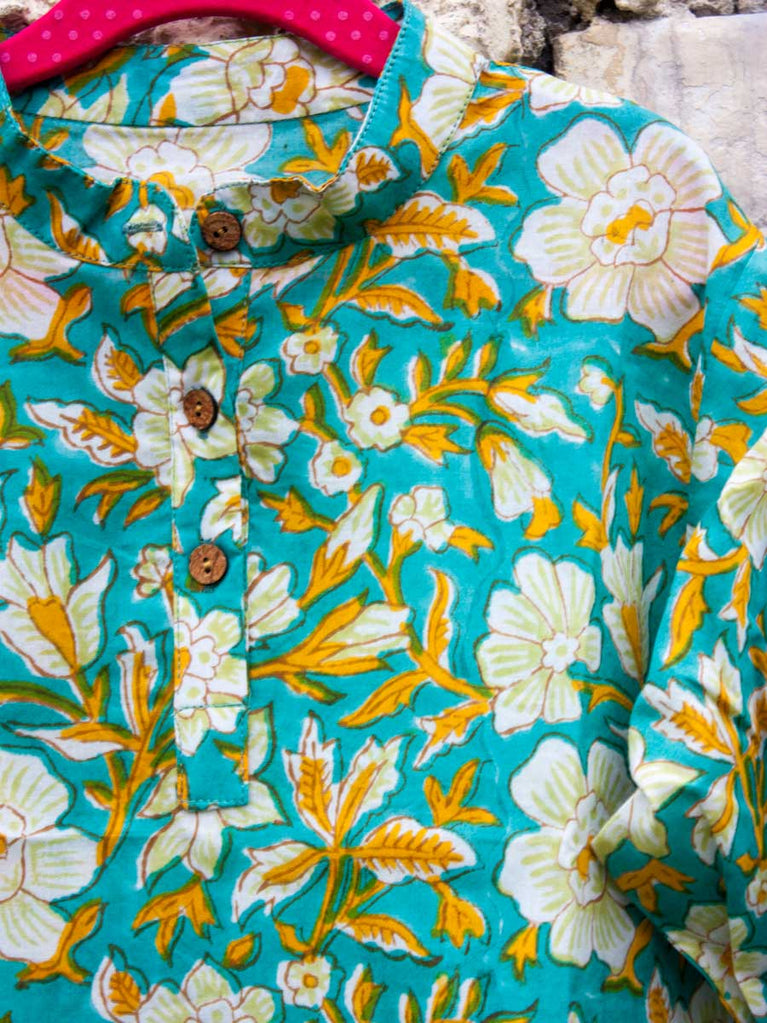 Floral Organic Cotton Shirt Kurta with Roll Up Sleeves