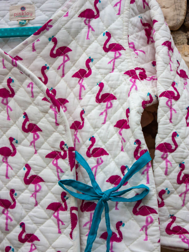 Flamingo Quilted Organic Cotton Block Printed Angrakha Set
