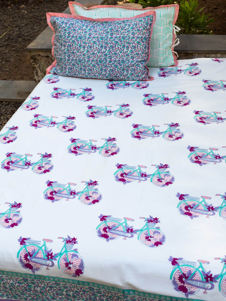 Floral Ride Block Printed Cotton Bedsheet