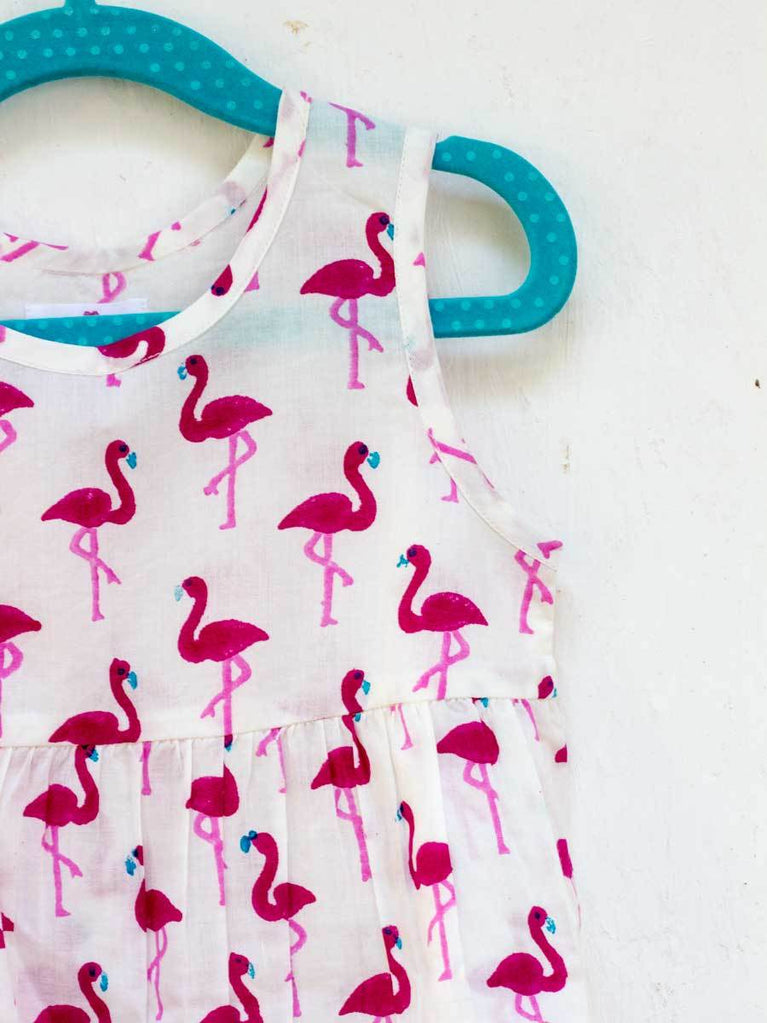Flamingo Whirl Organic Cotton Block Printed Sleeveless Dress