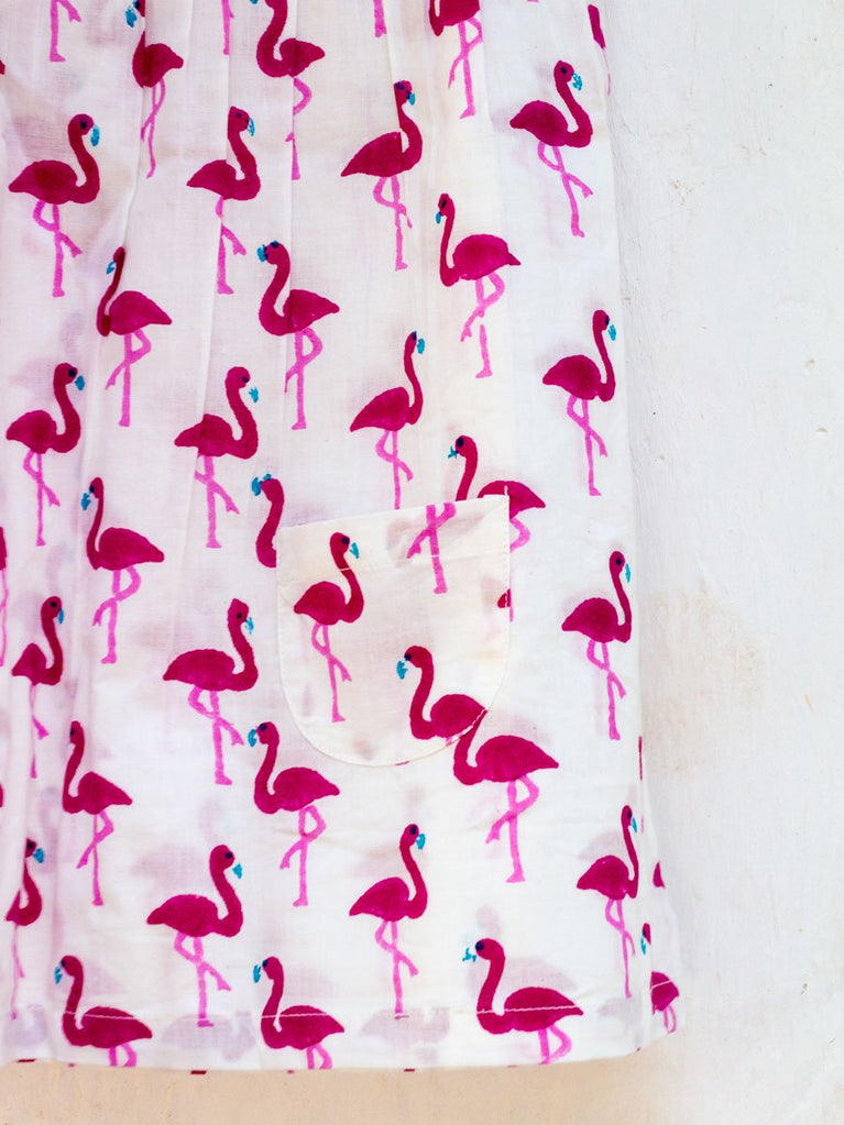 Flamingo Everyday Organic Cotton Block Printed Dress with a Pocket