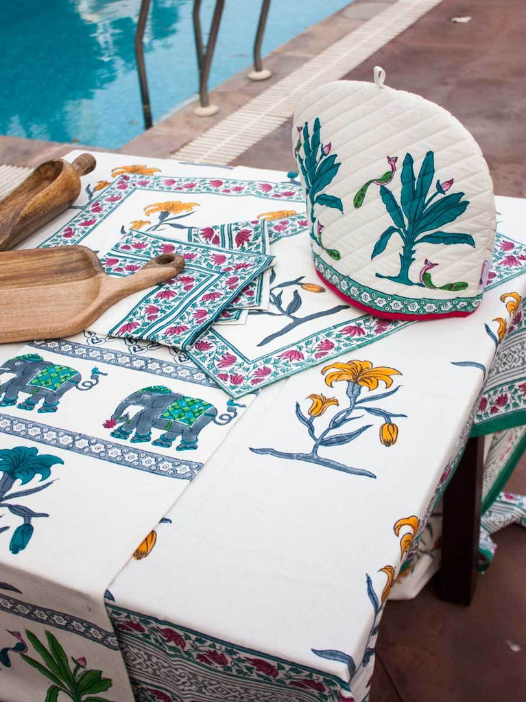 Floral Poetry Block Printed Cotton Table Mats - Set of 6