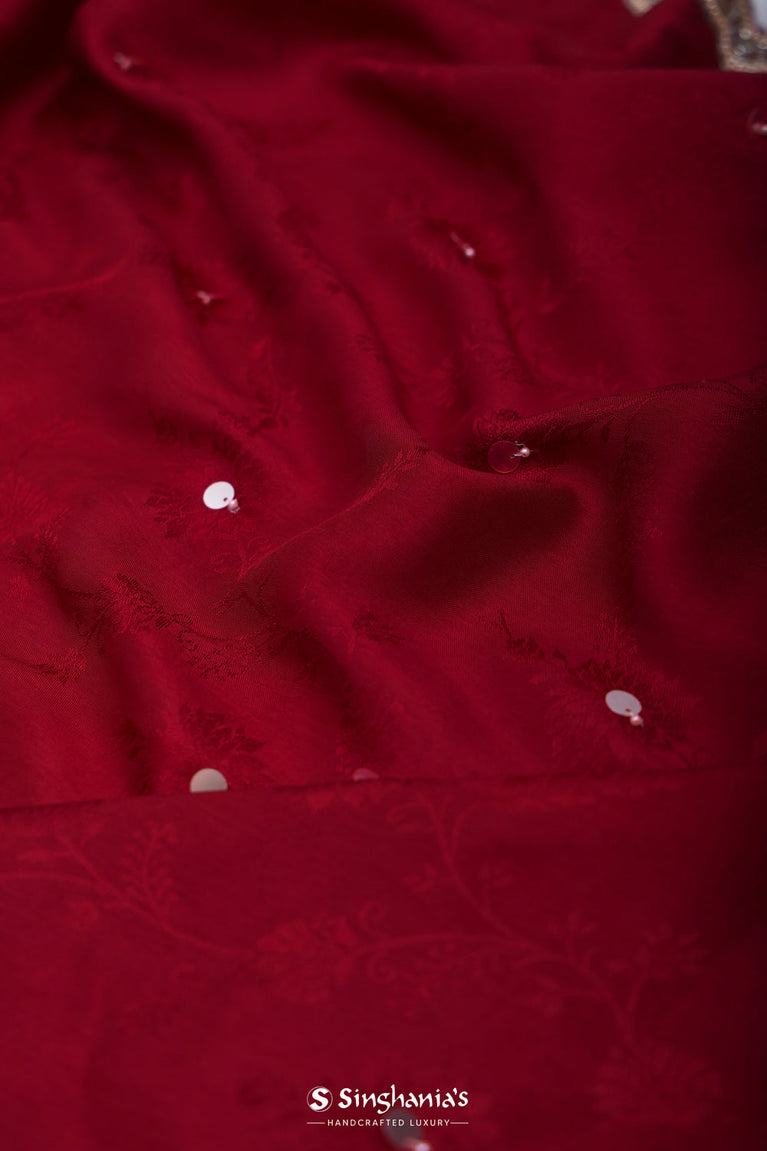 Deep Red Floral Jaal Kanjivaram Silk Saree