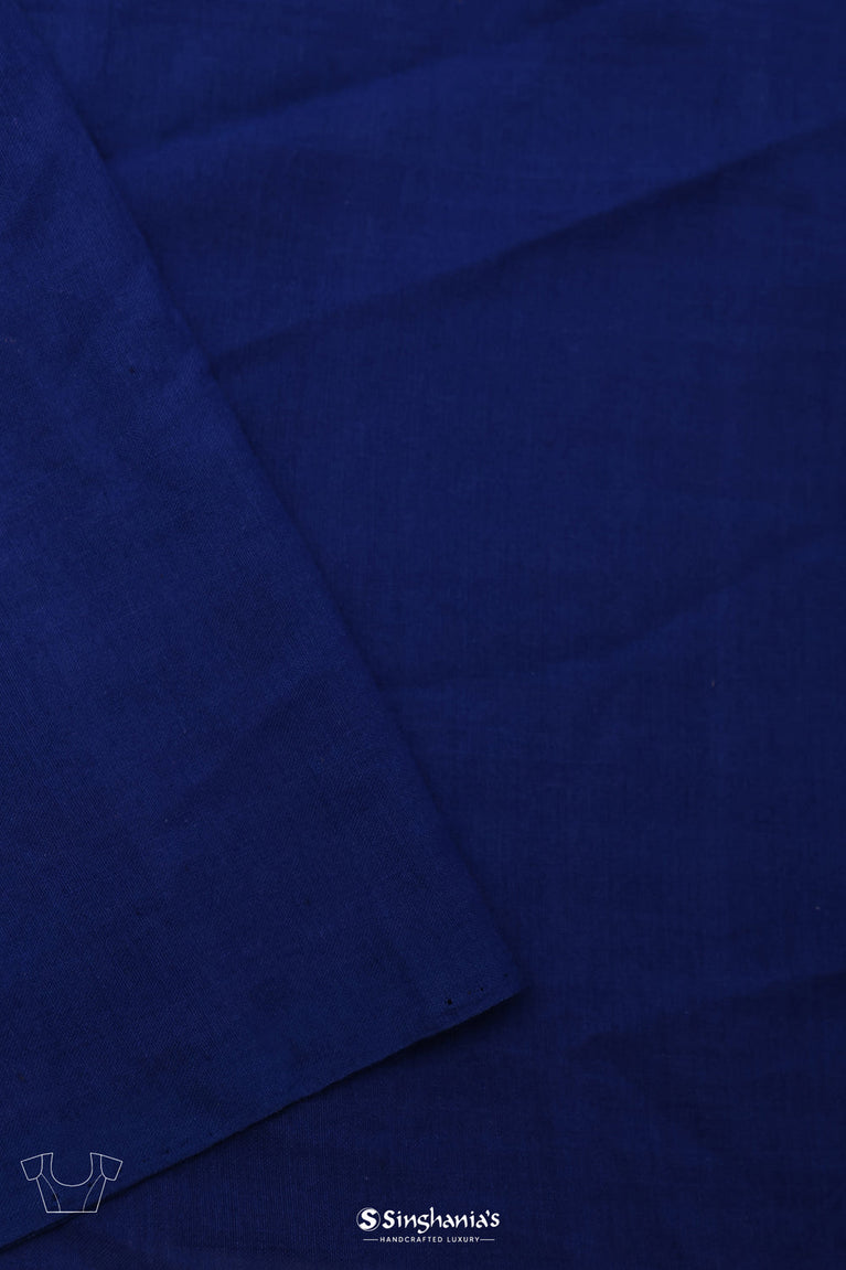 A cream base cotton saree decorated with blue colour minute checks pattern weaving all over. The big border and the pallu feature abstract ikkat pattern on solid colour, added with stripes pattern, accentuating the whole look.