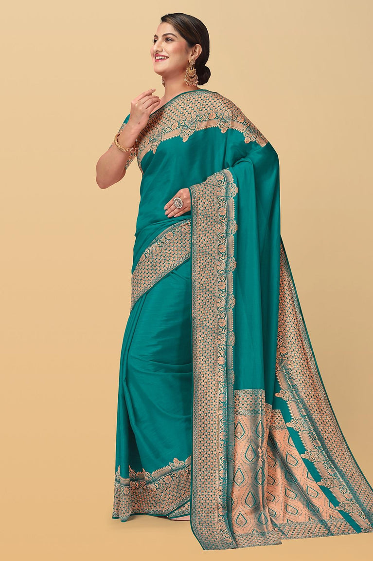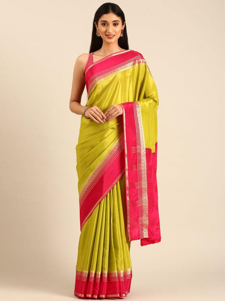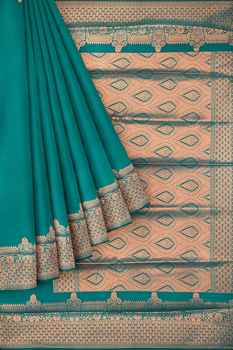 GREEN and GOLD PLAIN SILK BLEND Saree with SEMI PATTU