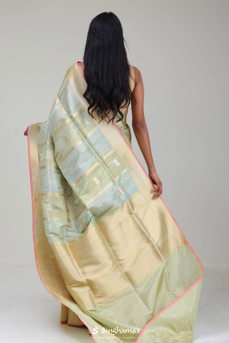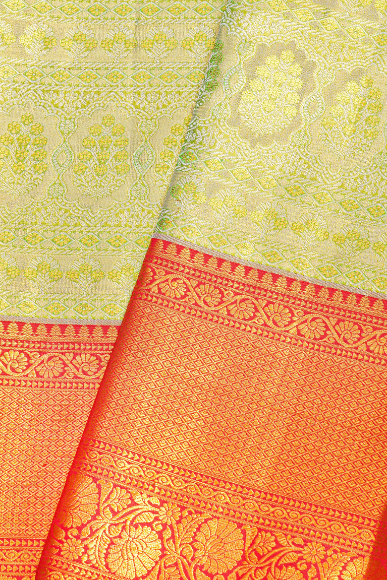 Green Gold Tissue Kanjivaram Saree With Floral Jaal Weaving