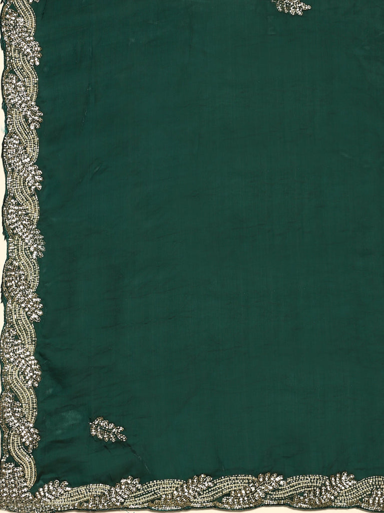 Green shimmer tissue saree with cut Dana & Swarovski embroidery