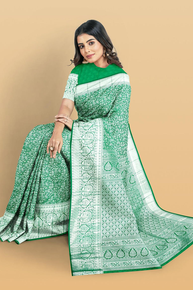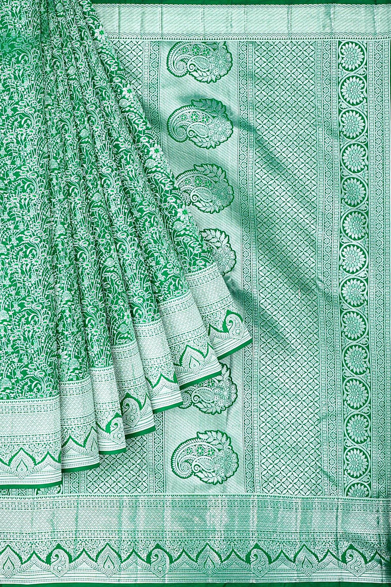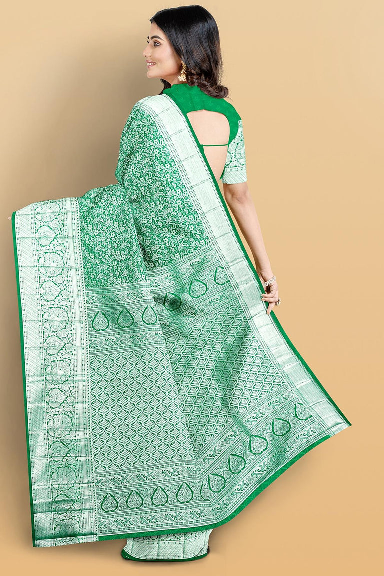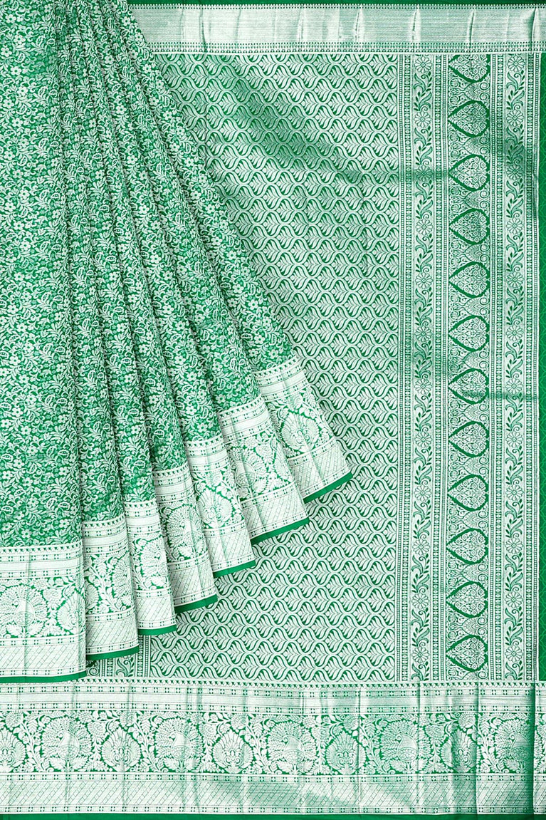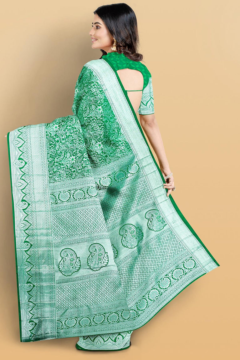 GREEN and SILVER FLORAL JAAL SILK BLEND Saree with SEMI PATTU