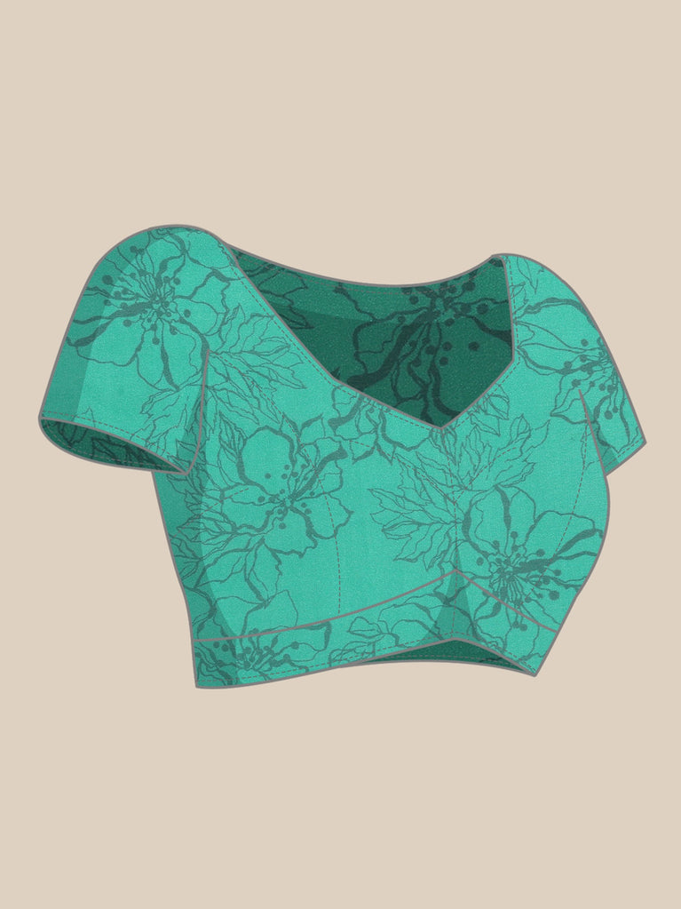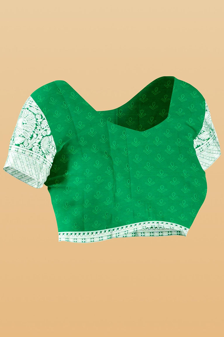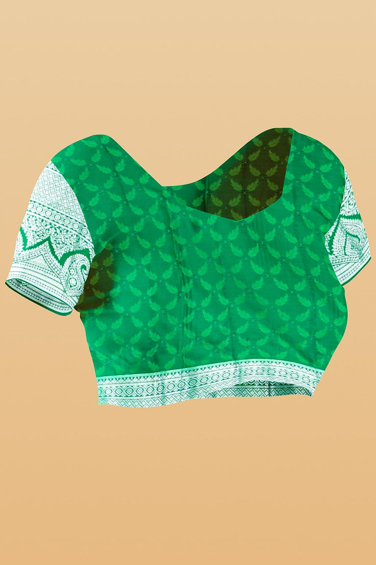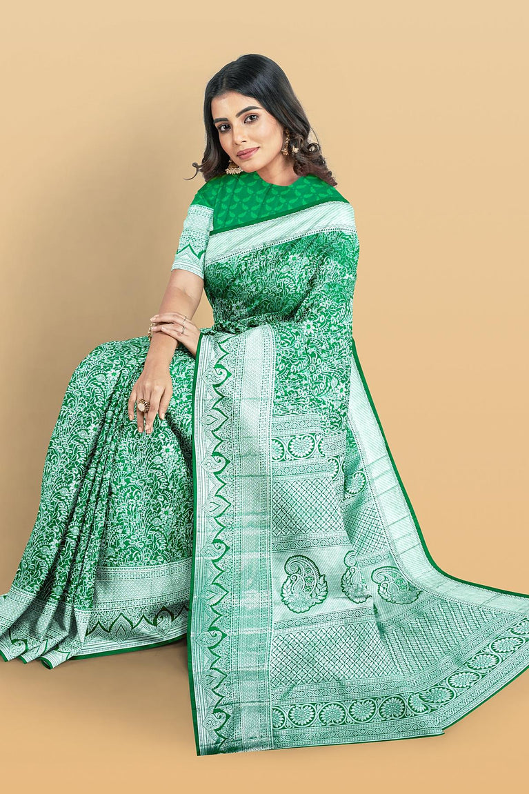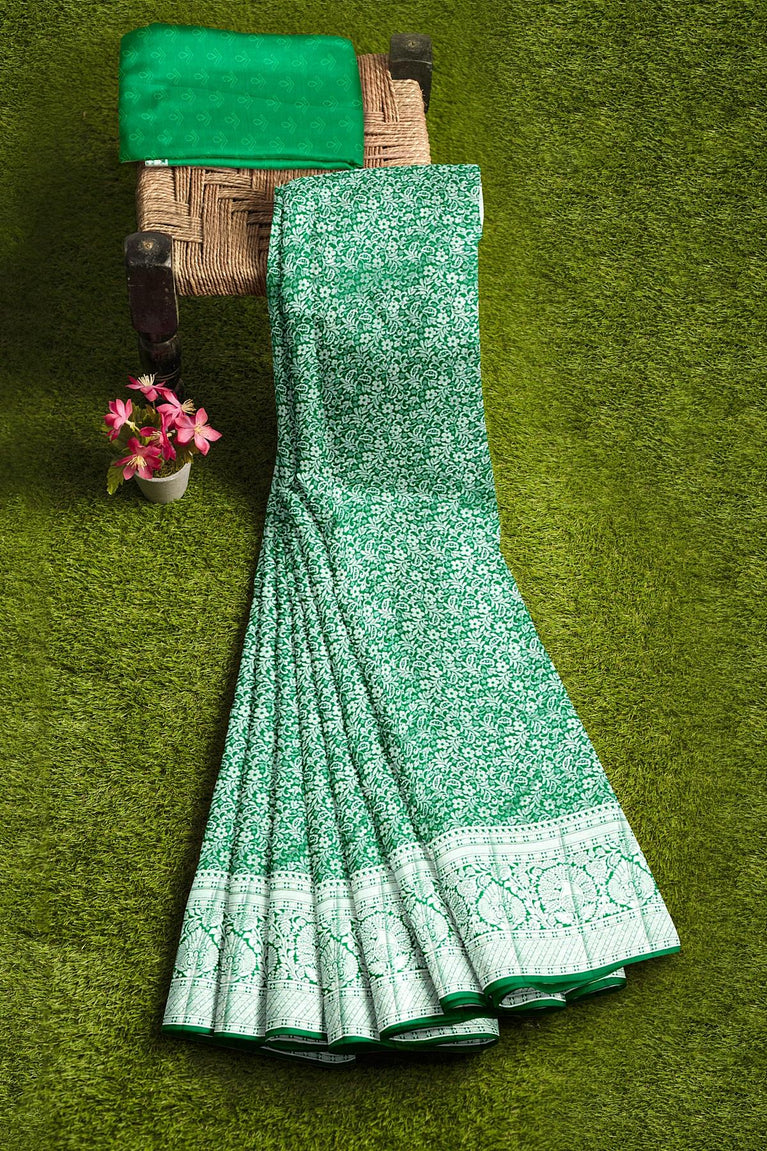 GREEN and SILVER FLORAL JAAL SILK BLEND Saree with SEMI PATTU