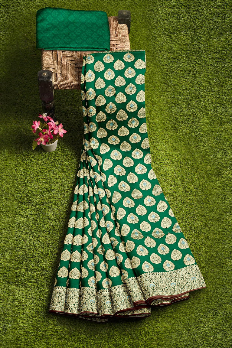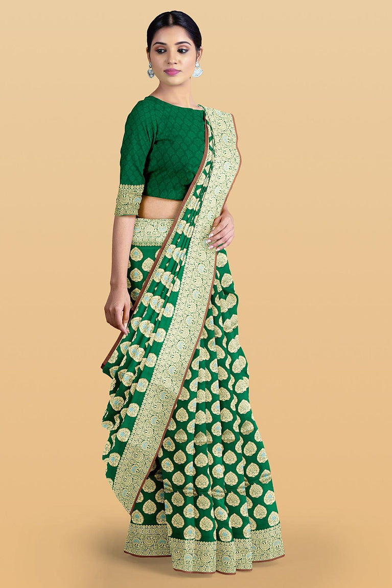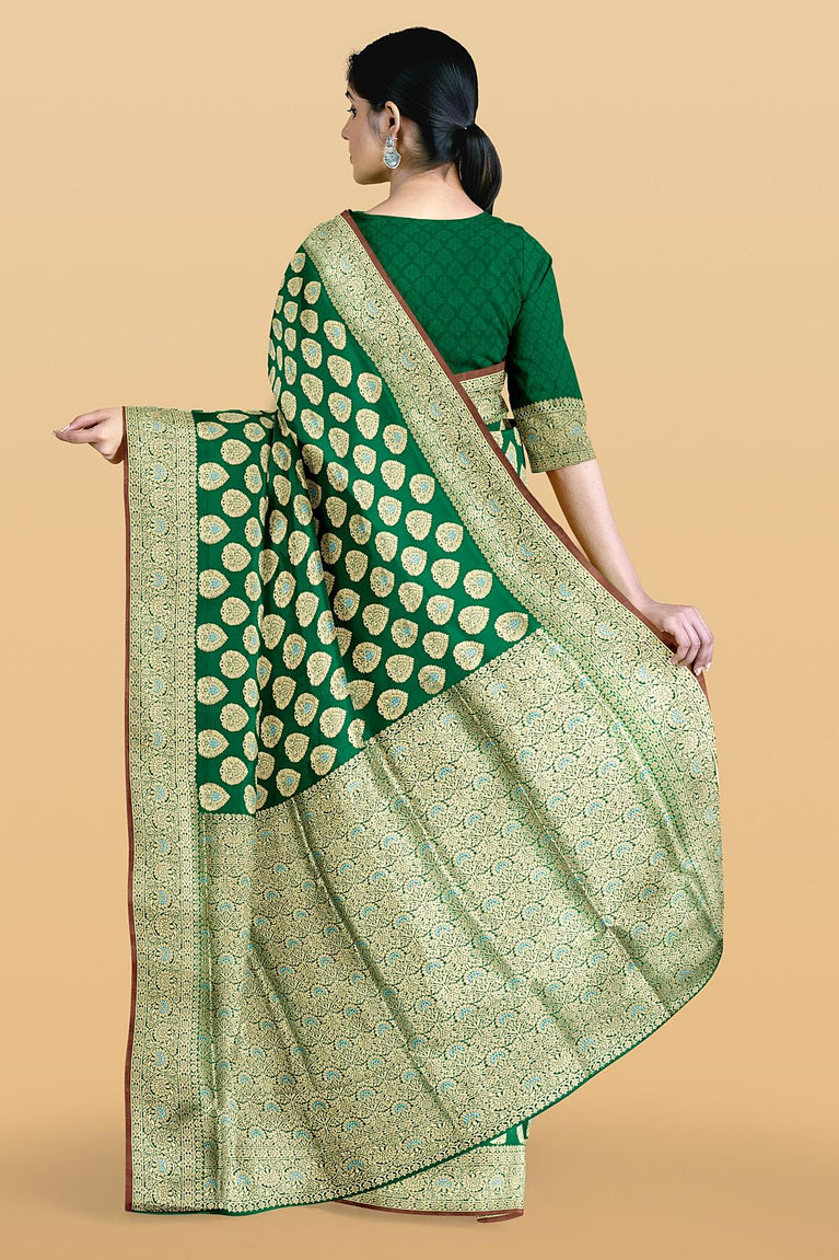 GREEN and GOLD BUTTIS SILK BLEND Saree with SEMI PATTU