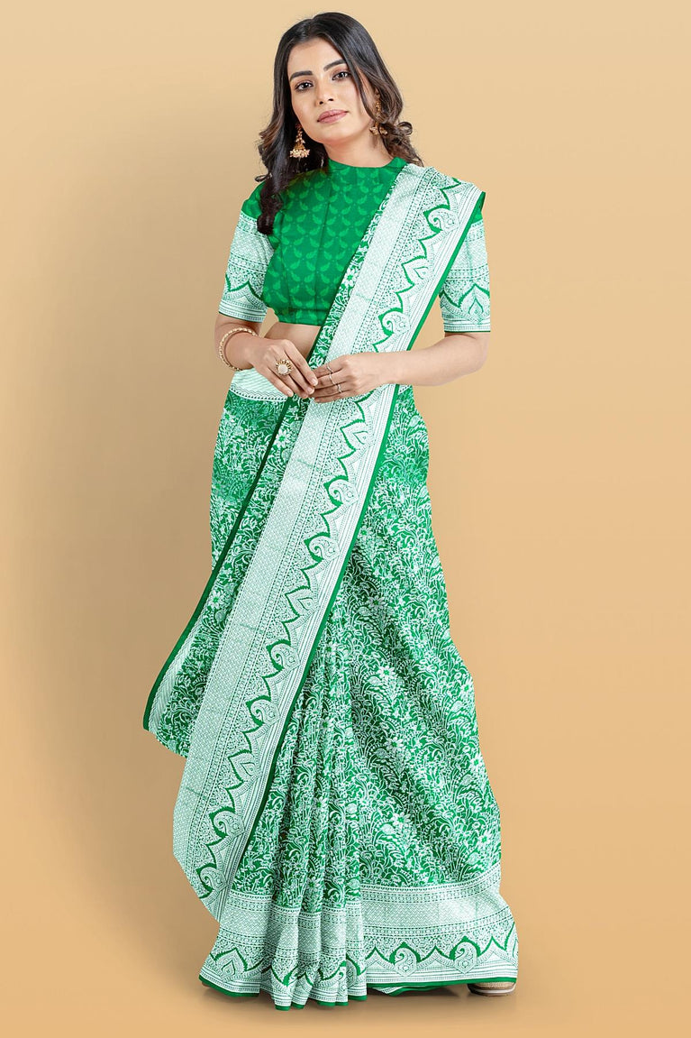 Green Banaras Silk Saree With Kalamkari Printed Border