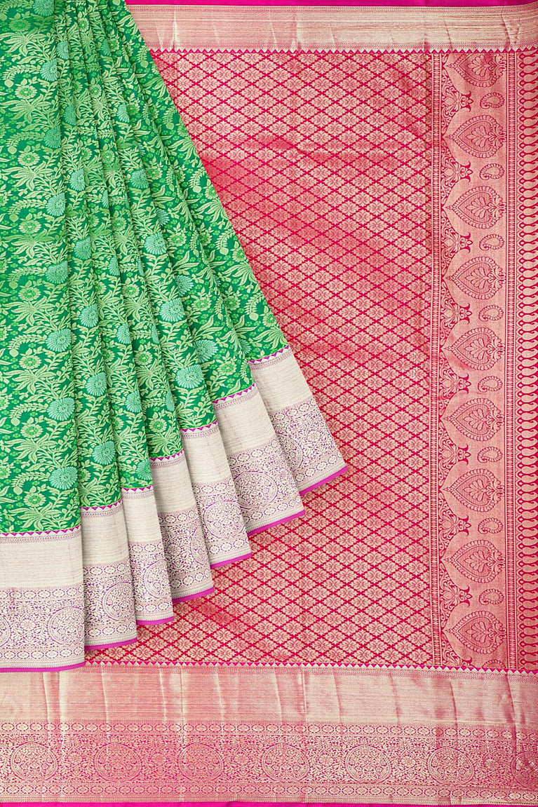 GREEN and RED FLORAL JAAL SILK Saree with KANCHIPURAM
