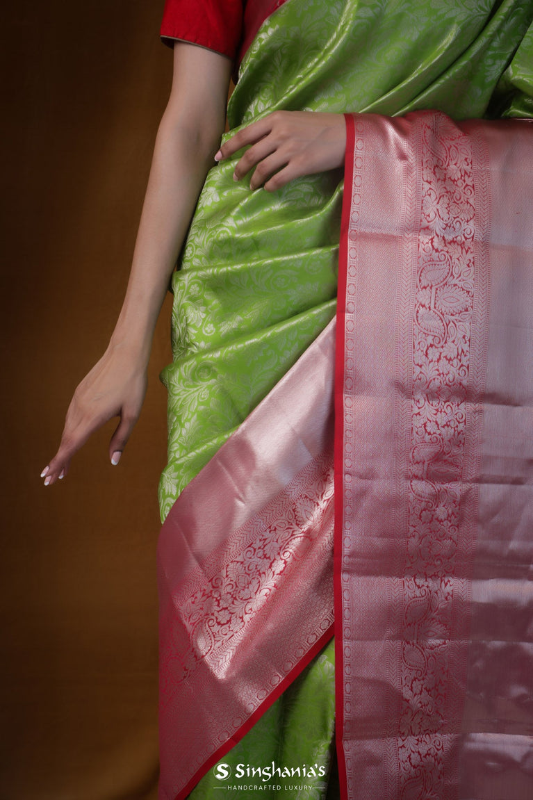 Kelly Green Kanjivaram Silk Saree With Floral Jaal Design