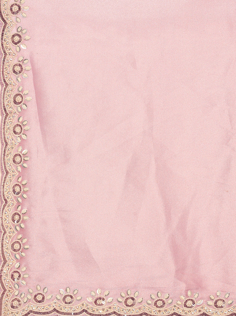 Lavender Jimmy tissue saree with pearls & beads embroidery with heavy ready made blouse