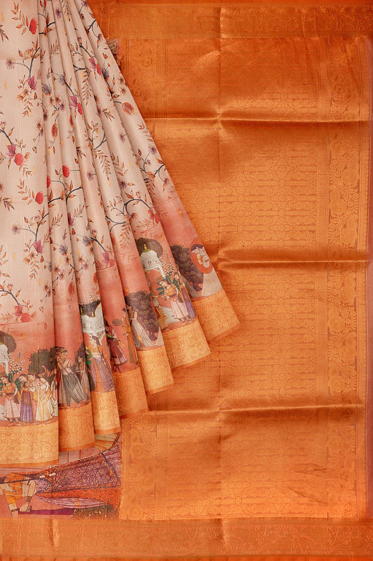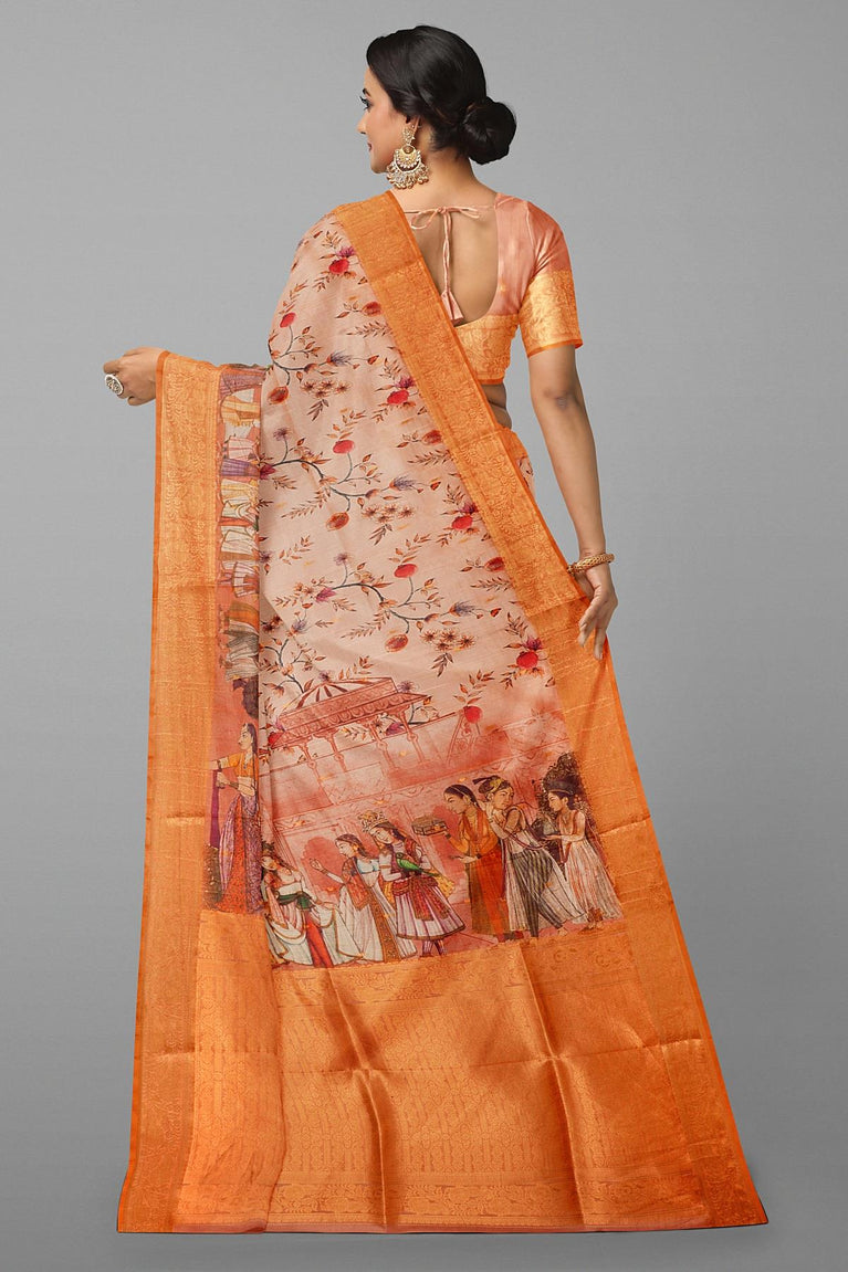 PEACH and RUST FLORALS SILK Saree with FANCY