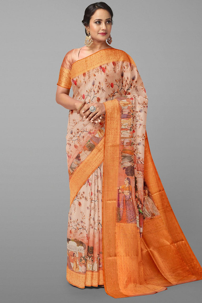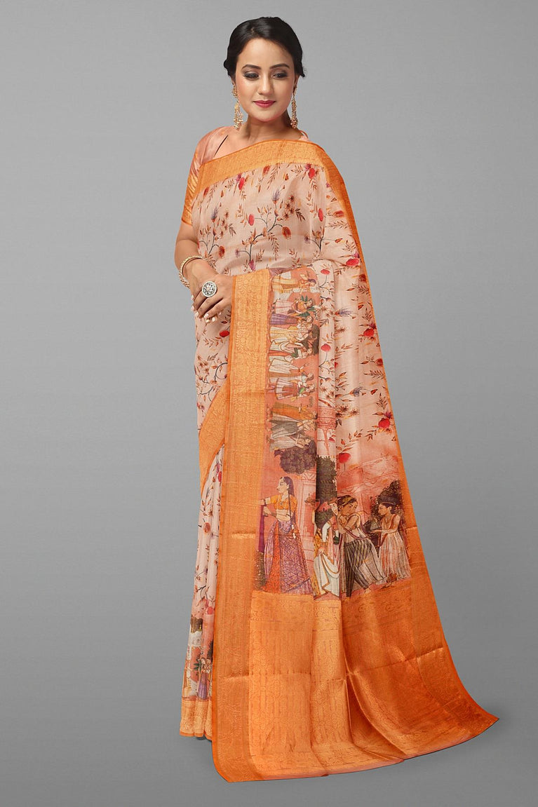 Printed Saree with Stitched Jarkan Blouse & Digital Print Pallu