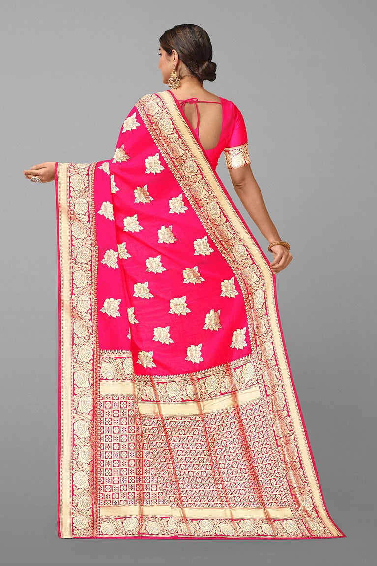 PINK and GOLD BUTTIS SILK BLEND Saree with SEMI PATTU