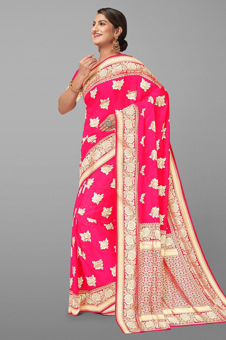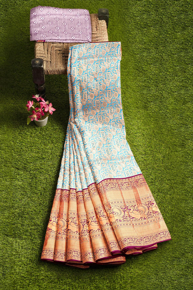 PINK and ROYAL BLUE FLORAL JAAL SILK Saree with KANCHIPURAM