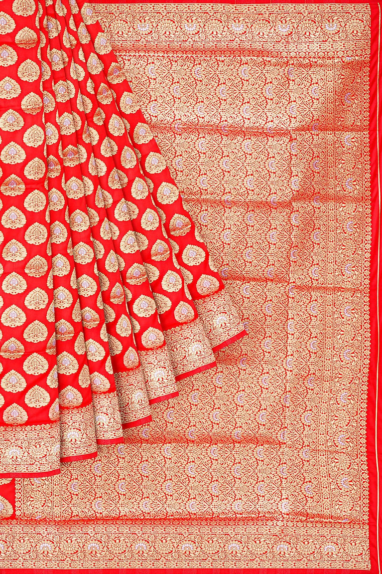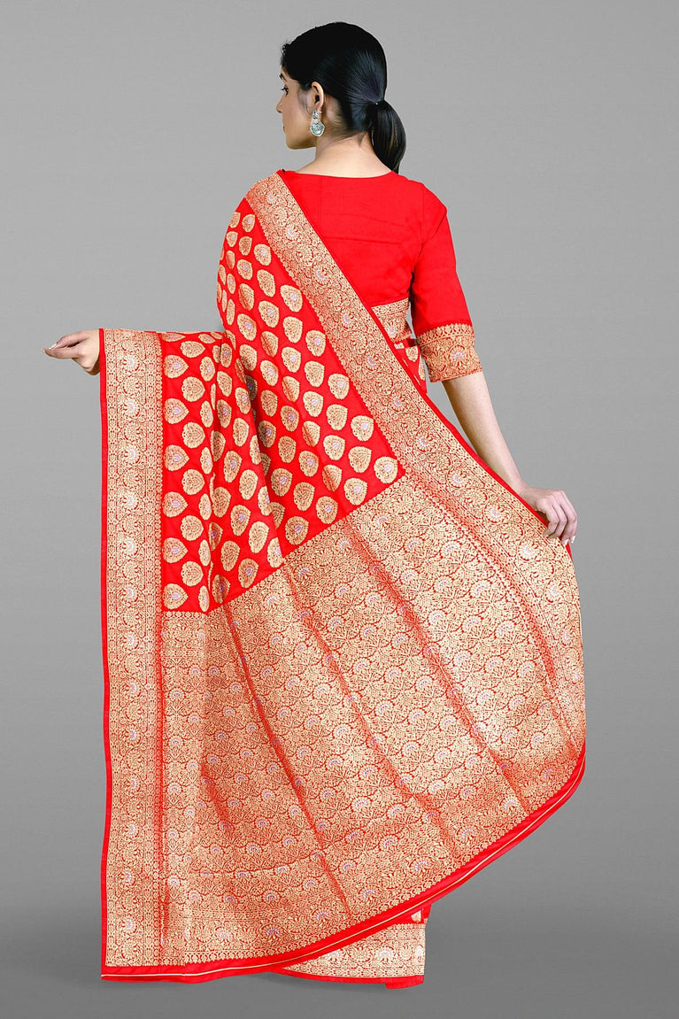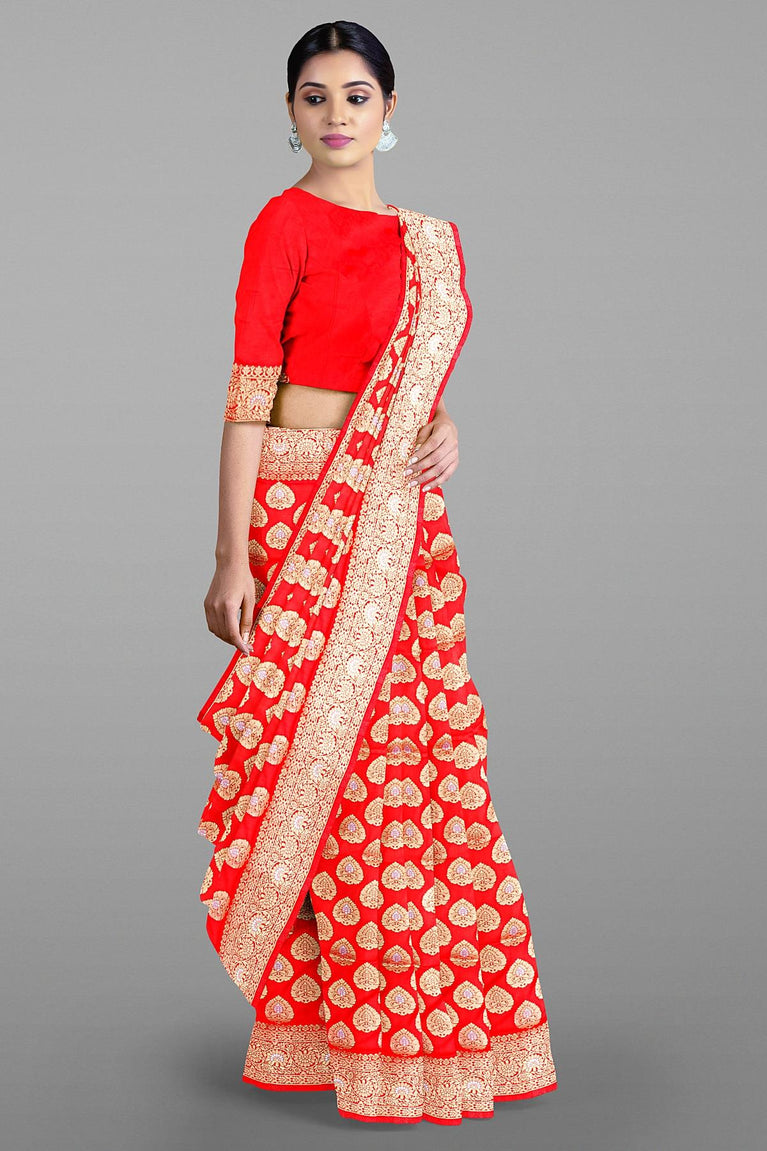 RED and GOLD BUTTIS SILK BLEND Saree with SEMI PATTU