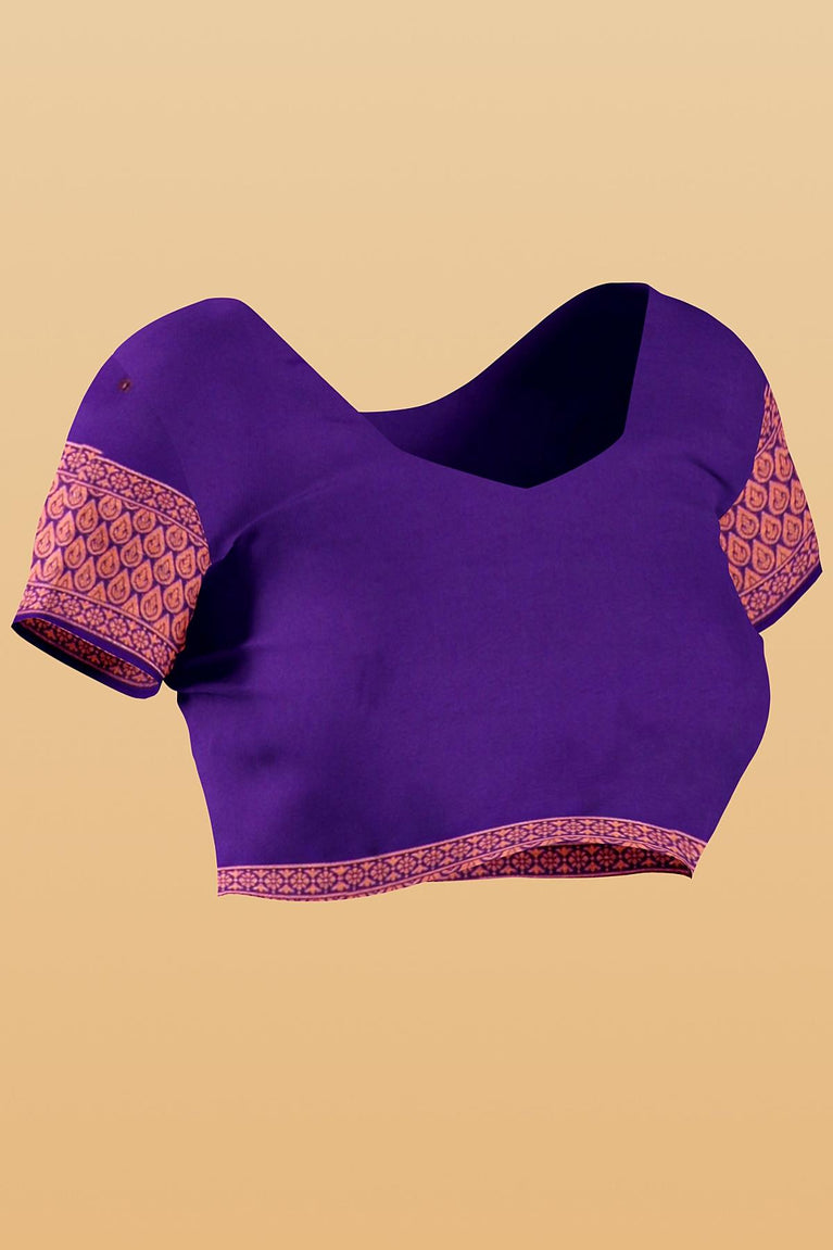 PURPLE and ROYAL BLUE FLORAL JAAL SILK BLEND Saree with SEMI PATTU