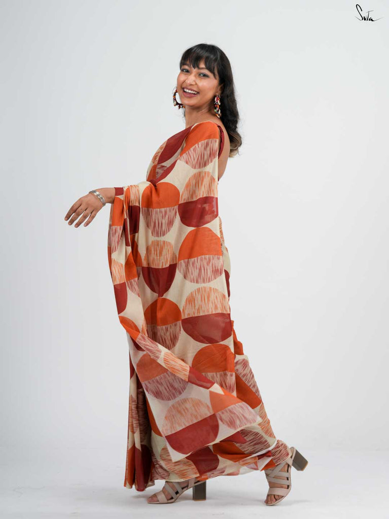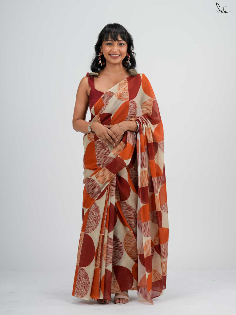 Printed Saree with Stitched Jarkan Blouse & Digital Print Pallu